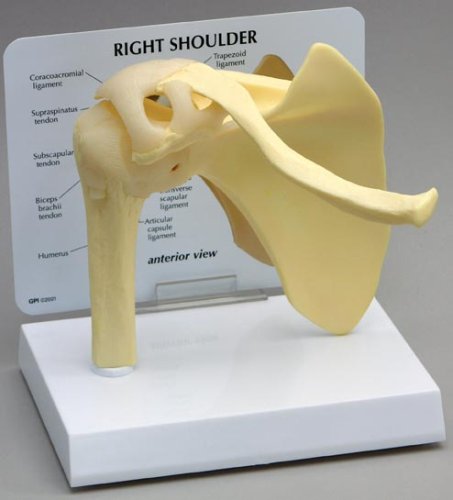 The Human Shoulder (Unmuscled) -LFA #1790: Full size normal right Shoulder model includes: clavicle, humerus and scapula bones; articular capsule ligament; teres minor tendon; plus 11 additional ligaments and tendons. Model size: 5-1/2" x 6" x 6: Educational Card size: 6-1/2" x 5-1/4" Suitable for Orthopaedics, Chiropractic Medicine, general anatomical study, podiatry, training for surgical dissection, sports medicine, or for patient education/demonstration of procedures. Quantity discount available.Ideal for clinical display and consumer education